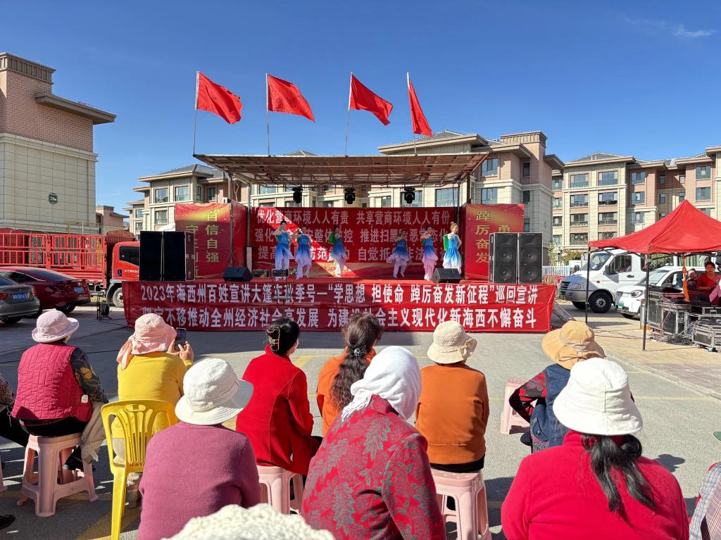 10月24日,2023年海西州百姓宣讲大篷车秋季号“学思想 担使命 踔厉奋发新征程”巡回宣讲活动走进甘南村,以“理论+文艺”的形式开展宣讲。活动通过青海花儿、激情快板、民族舞蹈等群众喜闻乐见的文艺节目,在丰富群众文化生活的同时,也让党的创新理论政策深入人心。