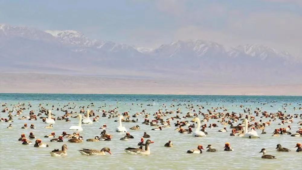 人与自然和谐共生 |候鸟归时春回暖 发布时间:2024年03月22日 09时16分来源: 近日,记者来到德令哈市可鲁克湖,站在湖边极目远望,水天一色,清澈的水面上波光粼粼,湖底长满水草,随波摇曳,成群的水鸟或栖息在芦苇丛中,或在水面翻飞觅食。每年初春,湖水融化,成群的白鹭、斑头雁、野鸭等珍禽飞到这里,在沼泽和芦苇中筑巢栖居。据了解,该地记录鸟类19目47科149种,其中国家Ⅰ级重点保护鸟类8种,国家Ⅱ级重点保护鸟类15种。 上一条:陈刚:为加快发展新质生产力提供人才技术支撑 下一条:德令哈市召开“柴达木盐羊”宣传推广工作领导小组第一次会议 【关闭】 0