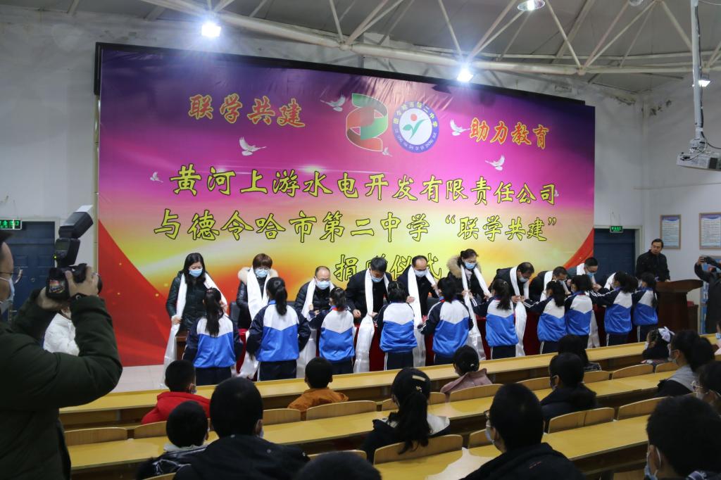 黄河上游水电开发有限责任公司乡村振兴办公室主任李强说:“为加快德令哈教育发展,去年我们公司计划捐资64.22万元,启动为期三年的‘企校共建’活动。这次出资近30万元购买课桌椅700套、综合音响设施1套,捐赠给德令哈市第二中学,并评选奖励30名‘黄河水电校园之星’。希望能为改善市第二中学教育设施条件,提高德令哈教育水平、激励孩子奋发学习的热情,尽一份绵薄之力,也是我们公司回报社会,深化党史教育,践行‘我为群众办实事’,支持教育、关注未来的具体行动。”