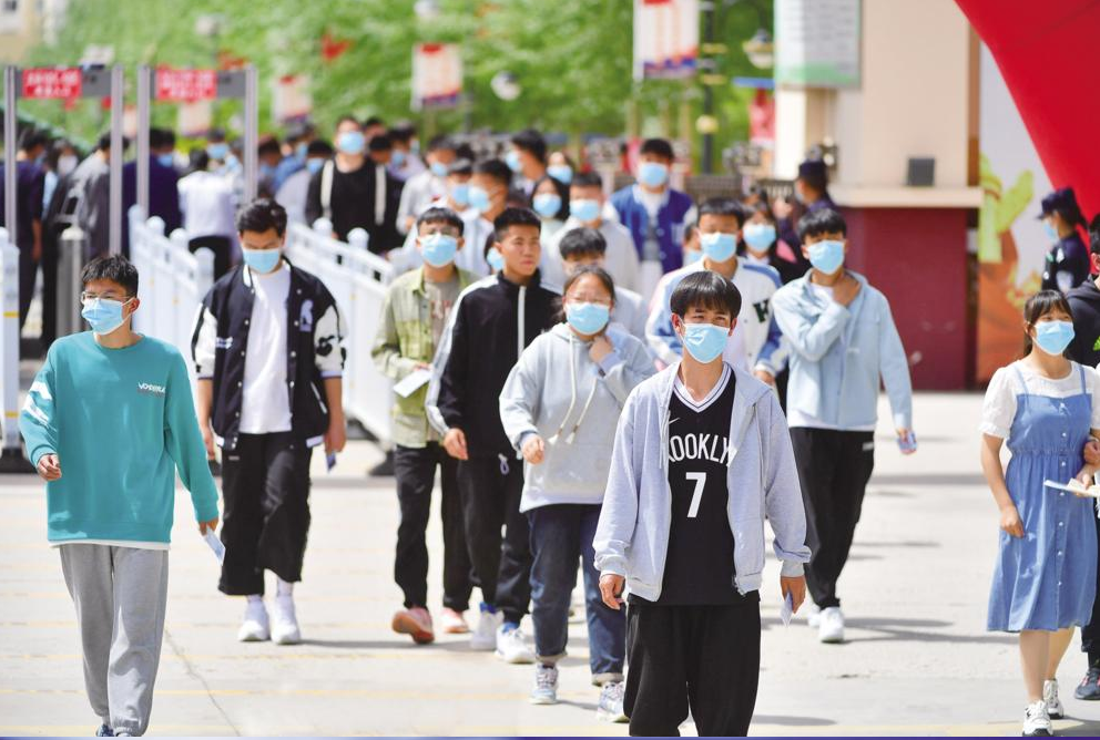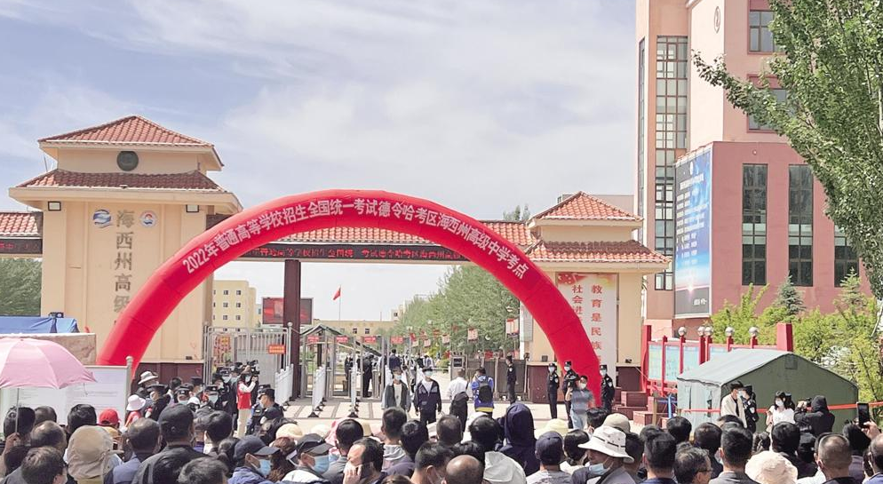 上午7点30分,距离高考首场开考还有一个多小时,2022年普通高等学校招生全国统一考试德令哈考区海西州高级中学考点外考生和家长已到场候考。上午8点,考生们保持安全距离,提前测量体温入场,考点设有防护隔离特殊通道,配备专业防疫人员和医务人员。考试开始,考场内,是莘莘学子自如、自信、自强挥笔作答的场景;考场外,是无数家长默默守候、翘首以盼的爱和期望。