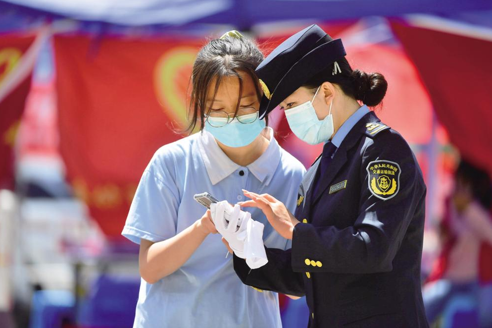 为了给广大考生和家长提供优质高效的服务,营造文明和谐的考试氛围,高考期间,共青团德令哈市委组织青年志愿者及蓝天救援队队员,在德令哈考点开设志愿服务高考服务站,搭起遮雨棚,招募爱心车辆和志愿者,分批次值班开展志愿服务工作。共青团德令哈市委工作人员科思林说:“希望通过志愿服务,进一步弘扬志愿服务精神,积极服务考生,用实际行动为广大考生营造文明、有序、和谐、便利、安宁的考试环境,为考生护航,助考生圆梦。”11点30分,首场考试结束,考生们自信满满,陆续走出考场,场外等候的家长们也把最暖心的微笑给了孩子。考场外,爱心车辆已经在交警的引导下有序排队,等待接送考生。据介绍,为确保考生顺利、安全抵达考场,德令哈地区近100多辆“高考爱心车”分布在考点周边、小区集中的地方,在落实疫情防控各项举措的前提下,开展爱心护考行动,充分做好应对各种突发情况的准备,安全、快捷接送考生,为考生顺利参加高考保驾护航。当天,考场外,除了家长等待的身影,还有爱心护航的民警、交警、消防救援人员和志愿者,他们各司其职全力护考,为考生们营造良好的考试环境。