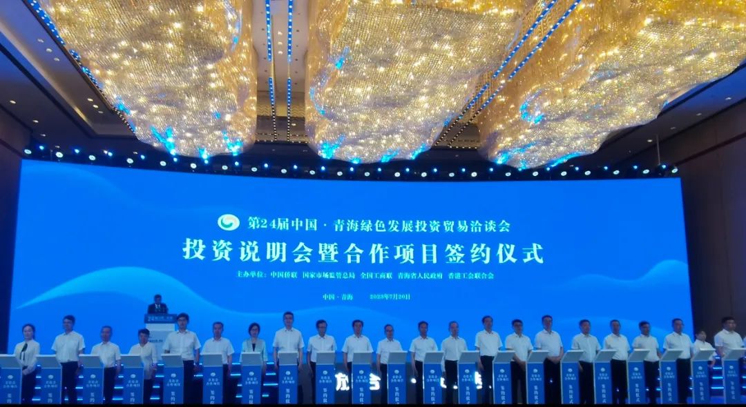 7月20日下午,第24届中国·青海绿色发展投资贸易洽谈会投资说明会暨合作项目签约仪式在西宁举行。签约现场,德令哈市人民政府与莱宝科技集团有限公司签订硅光伏产业链项目;与三一重能股份有限公司签订风光氢储氨一体化示范项目。
