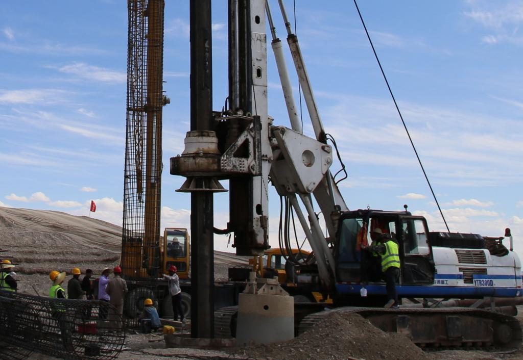 近日,记者在德令哈工业园区铁路专用线一期北站(DK0+200~DK2+300)标段施工现场看到,钻机、轧路机、挖掘机马达轰鸣,人来车往,一片争分夺秒抢工期的繁忙景象。
