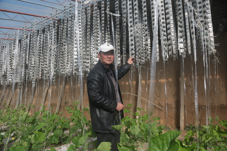 “冬季黄瓜生长,对温度的要求特别高,棚内夜间温度在5℃-8℃时能维持生命但不能生长。增加3℃-5℃后,这些作物夜里就能自然生长。”“怎么能看出来作物在生长?”“我们是通过查看秧苗上的瓜须判断黄瓜长势的。”马海云指着一株秧苗上的瓜须说,只要温度合适,一个晚上就能长出10公分,如果棚里湿度不够,须就会卷曲。“瓜须的长度、弯直程度还能直接反映棚里的温度水分情况。往年天气冷,棚里蔬菜生长缓慢,自从引进这项”低温相变储能材料应用新技术后,瞧,黄瓜秧苗长得多旺盛。“接着马海云队长又以黄瓜棚为例为我们算了一笔账,往年因棚内温度达不到几乎不生长、没有产量,今年通过引进这项新技术,每个棚能产2500-3000斤。以前冬天不种黄瓜、菜瓜,今年我们特意试种了一棚,就是想验证这项新技术的实际效果。如今,不但黄瓜长得好,一个西红柿大棚也能增产1000斤。