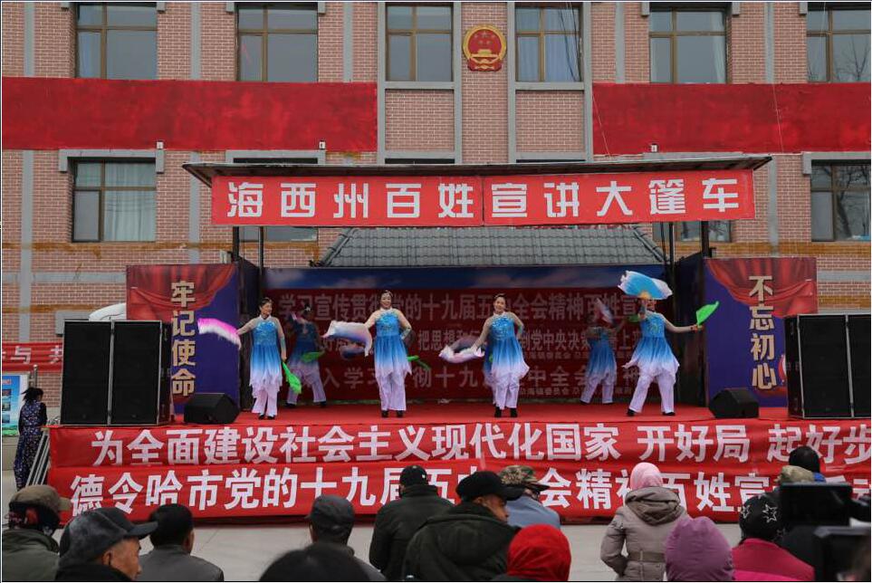 11月27日至28日,海西州百姓宣讲大篷车分别在尕海镇、德令哈市中心花苑广场,以花儿对唱、方言小品等文艺形式,把党的十九届五中全会精神唱到百姓的心坎里。