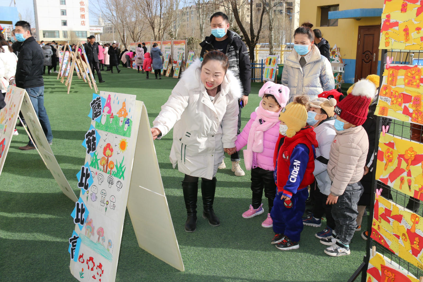 12月16日,在市八一路幼儿园举办的第三届《优+创意玩美术》画展上,同学们以水彩画、水粉画、剪贴画、手工创意等多种艺术形式,用灵巧的小手,表达了对未来美好生活的向往。