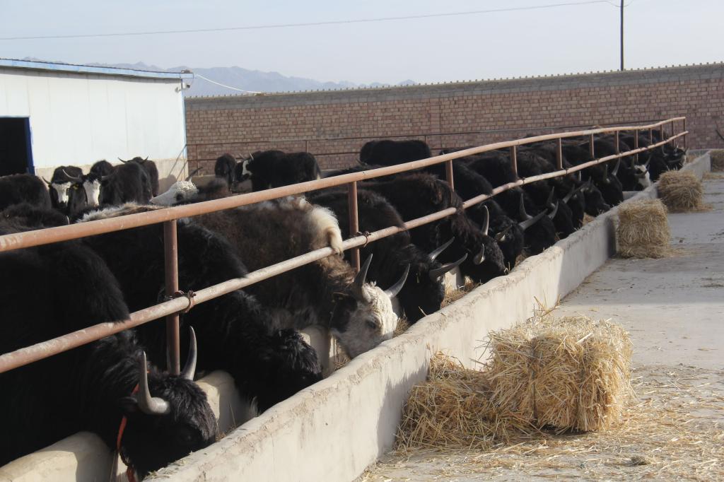 “颜师傅,我去把水槽洗干净,该给牛娃们喝水了!”“好!祁师傅,那我去装饲料。”“我去清扫一下牛棚……”一头头牦牛正在牛棚里悠闲地啃食饲草,工人们正在忙碌着打扫牛棚、准备饲料、给牛添食……