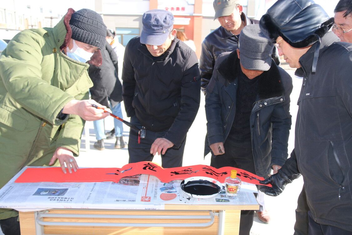 寒冬挡不住心中的暖意,一笔一划,寄托市委市政府对村民的关爱之情、书法家对村民幸福美好的祝福。
