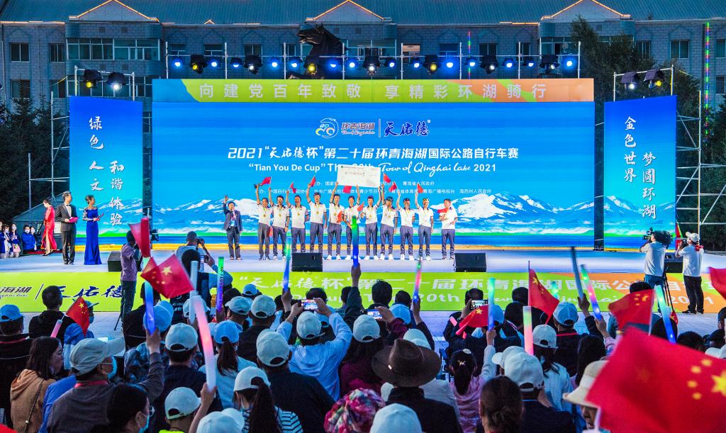 7月18日,2021“天佑德杯”第二十届环青海湖国际公路自行车赛闭幕式暨颁奖晚会在我市隆重举行。