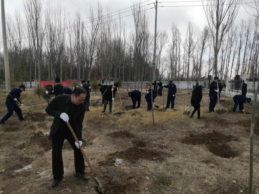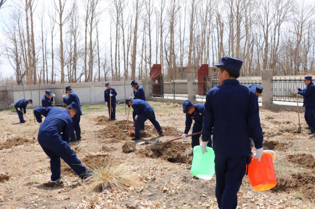 在植树现场,到处是官兵和干部职工植树的身影,呈现出一派热火朝天的植树场面。搬树、挖坑、扶苗、填土、踩实、浇水,各司其职,有条不紊稳的认真完成每一个植树环节,全体官兵发扬艰苦奋斗、顽强拼搏的良好作风,整个植树现场一片忙碌。经过一天的连续奋战,军民共同种植了松树、云杉和杨树350余棵,树苗由市林草局提供。看到通过自己的实际行动为烈士陵园增添新绿,内心的欣喜和自豪油然而生。跟随党的步伐、投身革命实践的信念在心中也变的更加坚定。