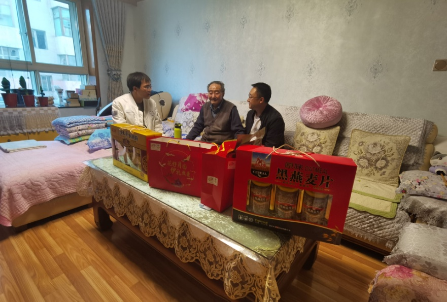 在付家邦家中,乔进祥关切地询问他的身体状况、日常生活等,感谢他对国家和人民所作出的贡献,叮嘱老人要好好保重身体,鼓励其要保持乐观开朗的心态,并祝愿他晚年幸福、身体安康。