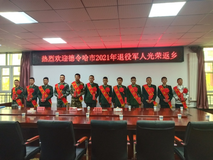 欢迎仪式上,退役士兵身着不同军种的军装,载誉归来,带着美好憧憬向德令哈报道,积极投身家乡建设,踏上人生旅途的新征程。市退役军人事务局主要负责同志为他们披绶带戴红花并赠送纪念品。局党组书记、局长海腾对光荣退役返乡的军人们表示热烈的欢迎,并表示:从军的历史,是你们一生的荣光。在军营的这种成长经历,是其他任何行业都不可能比拟的。你们穿的这身军装,是军旅生涯的最好见证,是奉献国防的最好勋章。在过去几年里,你们把美好的青春奉献给火热的军营,为国防建设和强军事业发展洒下了热血和汗水、贡献了聪明和才智。过去的日子里,你们在军营这个大熔炉里淬炼成钢,接受了洗礼,锻炼了体魄,锤炼了意志。当初稚嫩的面孔,现在已经烙上了军人独有的刚毅、坚强和自信,勾勒出军人独有的坚韧不拔的品质;在汗水和泪水夹杂的几年里,你们锻炼了过硬的素质,学会了忠诚和担当。这份军人特有的坚韧与担当,是你们人生最宝贵的财富,如今你们转战新岗位,踏上新征程,退伍只是战场的转移,并不是战斗的结束,脱下了军装,军队的优良传统依然在身,你们要不忘初心,重整行装再出发,以奋发有为的精神状态,投身到社会发展的新舞台,为地方经济发展和社会治理做出新的贡献。