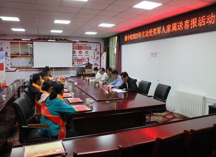 立功受奖是赞美和表彰英勇战士的荣誉,为立功受奖军人家庭送喜报,是对军人荣誉的尊崇。今年是纪念延安双拥运动80周年,为进一步弘扬我市拥军优属的光荣传统,增强军人军属的荣誉感和自豪感,营造尊重关爱功臣模范的浓厚社会氛围。7月26日,在第96个建军节来临之际,军地联合为荣立“三等功”的现役军人家属开展送喜报活动,共同庆祝一项嘉奖,一份荣誉,一份不懈的努力和追求的成果,一起见证、一起感受、一起致敬这一“戎耀”时刻。市委常委、市人武部部长宋子龙,市政府副市长何晏邦出席活动,市退役军人事务局党组书记、局长海腾主持活动,市退役军人事务局党组成员、副局长王小林,部分街道退役军人服务站负责同志和军人军属参加活动。