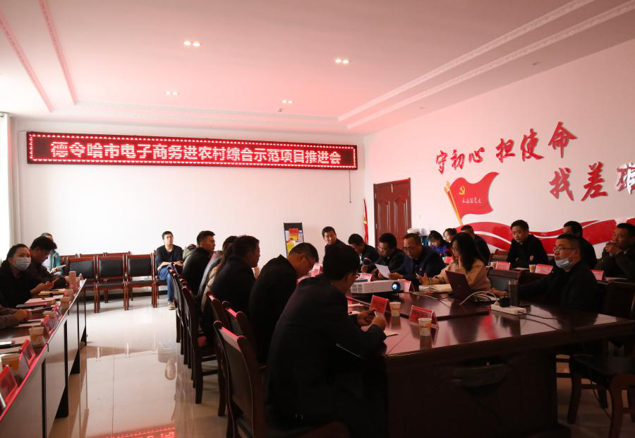 会上,德令哈市电子商务进农村综合示范项目建设单位向大家介绍了项目背景、建设内容和项目效益,并对3月份项目整体的建设进度进行汇报。同时,德令哈市工业科技和信息化局局长尹东来对项目建设单位提出具体要求。一是认清形势,把握机遇,切实增强全面实施电子商务进农村的责任感和紧迫感。二是明确目标,突出重点,强势推动电子商务进农村综合示范项目建设。三是加强领导,大力扶持,确保电子商务进农村综合示范项目取得实效并指出要坚持以习近平新时代中国特色社会主义思想为指导,全面贯彻党的十九大和中央经济工作会议精神,以电子商务进农村牧区项目建设为抓手,深入建设和完善农村牧区电子商务公共服务体系,推动特色农产品标准化、产业化、规模化生产,加大农村牧区市场主体培育,加强产销对接,促进农产品上行,加强电商培训,带动贫困人口稳定脱贫,推动农村牧区电子商务成为农业农村牧区现代化的新动能、新引擎。