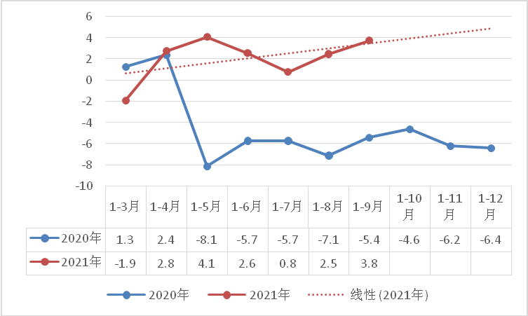 2021、2020年增速对比图 “两碱”行业平稳增长。三季度,化学原料和化学制品制造业增加值同比增长22.7%,其中:发投、昆碱两家企业工业增加值占全市规上工业增加值比重达45.56%,本季度纯碱产品价格再创新高,拉动作用明显。 在11个主要行业中,近七成行业下降。贡献较为突出的有化学原料和化学制品制造业增加值同比增长22.7%,拉动全市规上工业9.98个百分点;电力、热力生产和供应业增加值同比增长16.8%,拉动全市规上工业5.62个百分点。剩余9个行业有不同程度下降,主要表现在电气机械和器材制造业增加值同比下降72.3%,影响全市规上工业7.58个百分点;非金属矿物制品业增加值同比下降41.9%,影响全市规上工业3.78个百分点;非金属矿采选业增加值同比下降30.8%,影响全市规上工业0.23个百分点;橡胶和塑料制品业增加值同比下降67.9%,影响全市规上工业0.07个百分点;黑色金属冶炼和压延加工业增加值同比下降9.2%,影响全市规上工业0.02个百分点。 在24个行业小类中,10个行业工业总产值实现增长。贡献较为突出的有基础化学原料制造业(中航硅)同比增长90.86%,无机碱制造业(两碱)同比增长43.1%,风力发电(东方华路、协力)同比增长113.16%,炸药及火工产品制造业(东诺)同比增长16.43%,化学试剂和助剂制造业(西镁)同比增长9.18%。剩余14个行业存在不同程度的下降,主要体现在卫生材料及医药用品制造业(国草)同比下降99.2%,发电机及发电机组制造业(明阳、华汇)同比下降71.95%,塑料板、管、型材制造业(华汇)同比下降70.21%,砼结构构件制造业(金海、科力达)同比下降38.39%。 新能源产业稳定增长。今年以来,以光伏、风电为主的新能源产业持续保持稳定增长,成为引领工业增长的主要动力。三季度,新能源产业工业总产值占全市规上工业企业总产值16.45% 。截止目前,全市规上工业企业库(共43家)中新能源企业20家(含省返1家),占比46.5%。 生产经营景气情况。三季度,全市工业生产经营景气状况调查共抽取26家企业,样本量占全市规上工业企业总数的60.5%。调查结果显示:调查样本企业均正常生产,26.9%的企业认为本季度企业综合经营状况认为“良好”;73.1%的企业认为本季度企业综合经营状况认为“一般”;34.6%的企业预计下季度企业综合经营状况“乐观”;65.4%的企业预计下季度企业综合经营状况“一般”。 二、存在主要问题 (一)规上工业企业增速下降的企业数较多,发展速度缓慢。三季度,规上工业企业产值累计同比增速下降的企业共计22户(含省返1家),其中:累计同比增速下降超过30%的企业有11户。主要体现在:康利达矿业受市场影响,今年矿厂数量较同期少,产量减少,今年以来一直处于负增长;海西化工建材受水泥价格下跌影响;海西金海建材、科力达新型建材两家因市场不景气,订单量较同期减少,从二季度起持续下降;青海明阳新能源因企业销售模式改变,产品单价下调,全年数据进行核减;海西华汇受市场需求、原材料价格上涨等影响,企业赢利空间缩小,订单减少;奥雷德镁业受设备调试检修影响,整体产量下降。 (二)新增企业整体动力仍显不足。截至三季度,全年纳入规上工业企业共7家(含2家新建投产),其中:德令哈协力光伏(风电)保持增长,实现增加值累计同比增长68.17%;德令哈伊明农牧、青海中控太阳能两家企业较同期增幅并不明显;青海兴明电力全年受市场影响订单量少;海西和润生物自纳规以来,全年均在消化库存,预计正常生产预计到2022年4、5月份。 三、下一步工作 1.继续关注重点指标和领域,做好企业服务工作。加强工业经济运行监测,对出现增幅下滑、产销率波动较大、各项指标不匹配等问题的企业进行重点监测。尤其是要抓好上报数据中奇异值的核查工作,及时深入企业,开展数据查询,随时全面了解和掌握企业运转情况。 2.持续做好统计业务指导工作。利用报表查询、个别指导、集中培训等契机,强化专业统计培训,进一步促进企业重视统计工作,同时加大统计数据质量核查力度,督促指导企业开展统计数据自查自纠,切实规范统计基础和提高统计数据质量。 3.新增入库单位存量,培育工业新增动力。继续加大对今年拟纳入规模以上企业的培植争取力度,着重监测拉动作用强、贡献大的符合条件企业入规。在重点监测的企业中:德令哈华能拓日新能源发电有限公司现已达到规模以上工业企业入规标准,计划在年底纳入规上工业企业名录库。 |